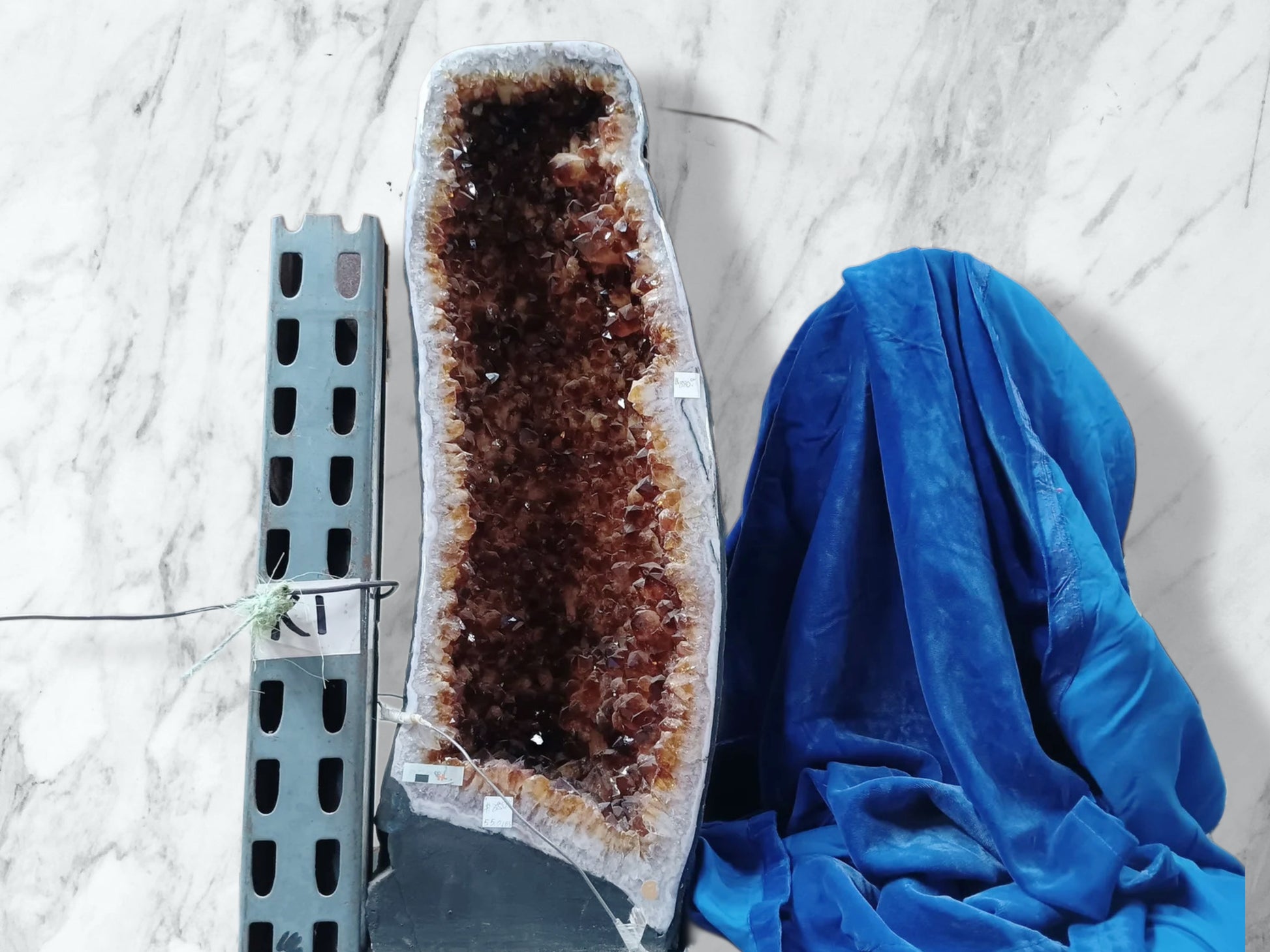 Expertly crafted and towering high, our Tall Citrine Cathedral Tower is a must-have for any crystal collection. The prominent cathedral shape amplifies the power of the natural citrine gem, bringing abundance and positivity to your space. Elevate your energy and manifest your desires with this commanding crystal tower.